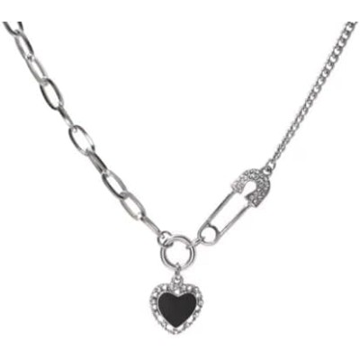 Safety Pin Necklace Heart Pendant Sweet Cool Style Paper Clip Necklace with Extension Chain Simple Copper Personality Exquisite Safety Pin Jewelry for Women
