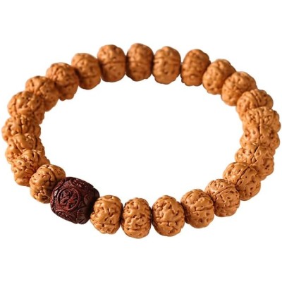 xiexuelian Small Vajra Bodhi Seed Bracelet, Buddhist Beads, Hand-polished Collectible, Men's Sandalwood "Fu" Character Beads, "Abundance Every Year" Single-Strand Bracelet for Women