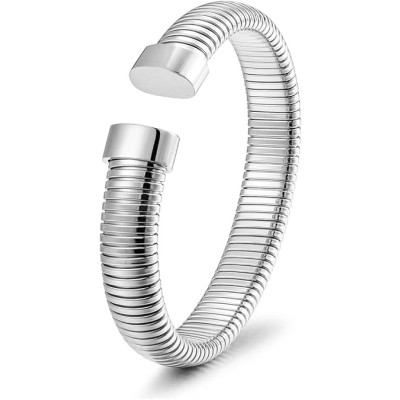 CIUNOFOR 14K Gold Plated Braclets for Women, Silver Layered Herringbone Stretch Bracelet, Stackable Chunky Snake Chain Bangle for Her Gifts, Fit 6.5”–7.5” Wrists