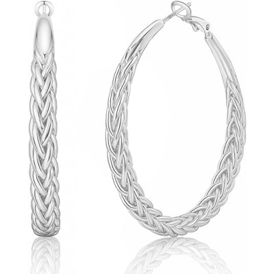 925 Sterling Silver Hoop Earrings for Women, Hypoallergenic Large Thick Twisted Hoops, Lightweight Earrings,Gift for Her
