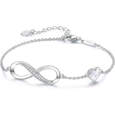 CDE Infinity Heart Birthstone Charm Link Bracelet for Women 925 Sterling Silver Adjustable Mother's Day Christmas Day Gift Anniversary Birthday Jewelry for Wife Girlfriend Her