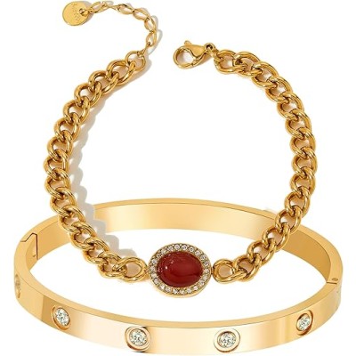 A D. ALLEN & DANMI. 18 K Gold Plated Love Bangle Bracelet Set Flexible Wide Wristband Bangle Bangle Set for Love