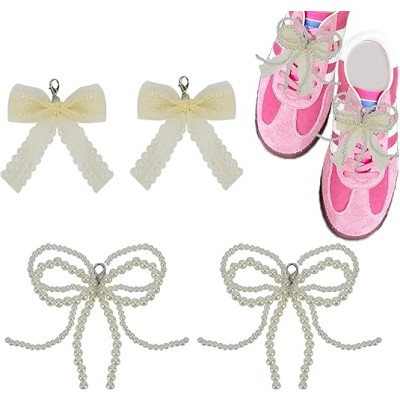 4 Pcs Pearl Bowknot Shoe Charms,Shoes Lace Charm for Sneakers,Bow Y2K Decoration Pearl Accessories for Sneaker,Purse,Backpack,Handbag,Jewelry Making