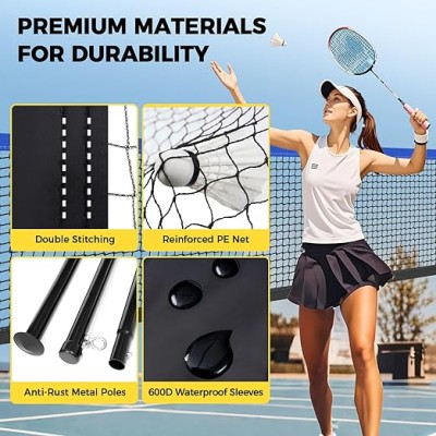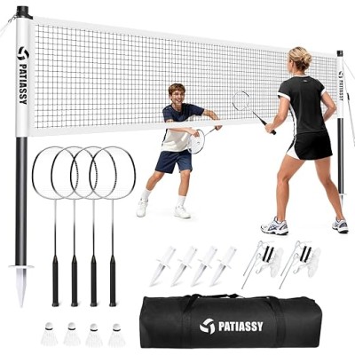 Badminton Set for Backyard, Portable Anti-Sag Badminton Net with 4 Badminton Rackets, 4 Nylon Shuttlecocks and Carry Bag, for Lawn Beach Family Games