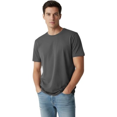 Men’s 100% Cotton T-Shirt, Crew Neck Soft Premium Regular Fit Tee, Plain Short Sleeve Comfort Fit Tees for Men - Dark Grey (M) Pack of 1