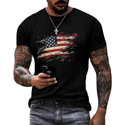 Shirt for Men American Flag Print Crewneck Short Sleeve Casual Stylish Summer Shirts Graphic Skull T-Shirt Tops